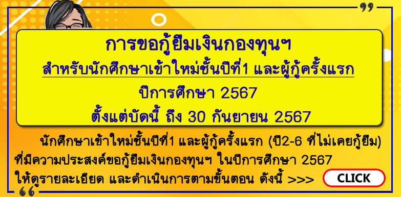 การขอกู้ยืมเงินกองทุนฯ (ผู้กู้รายใหม่) ปีการศึกษา 2567
