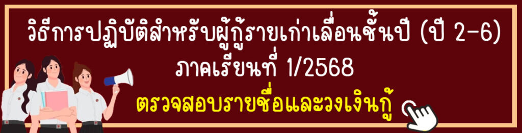 | นักศึกษาที่ลงทะเบียนเรียบร้อยแล้ว เข้าระบบเพื่อยืนยันการเบิกเงินกู้ยืม(บันทึกค่าเล่าเรียน/ค่าครองชีพ) ผ่าน Application กยศ. Connect หรือ https://wsa.dsl.studentloan.or.th และพิมพ์แบบยืนยันการเบิกเงินกู้ยืม (ตัวอย่าง) |
