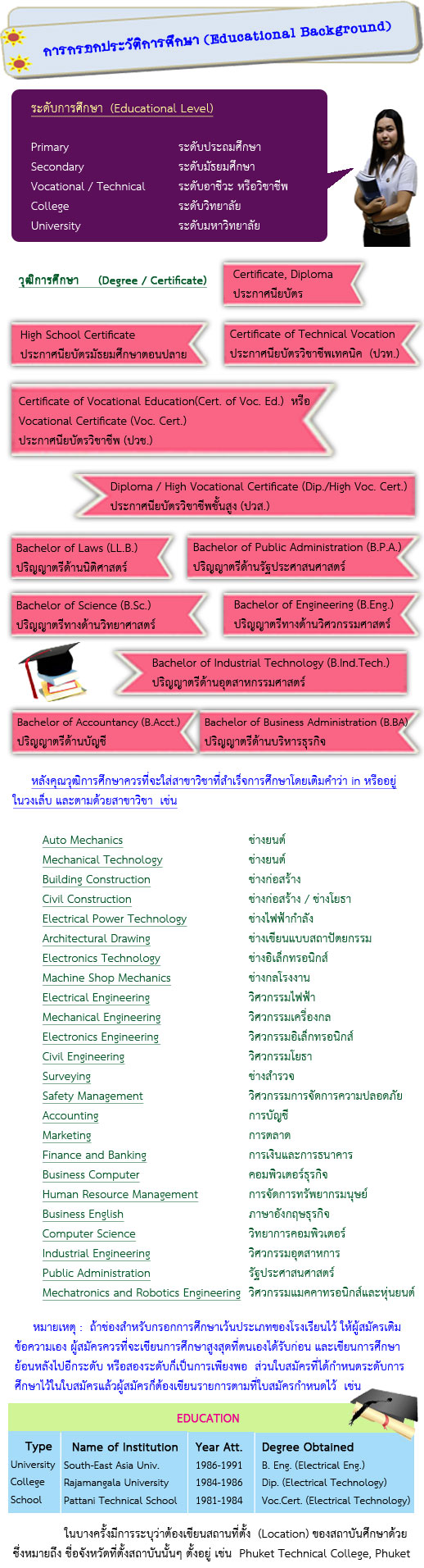 การกรอกประวัติการศึกษา