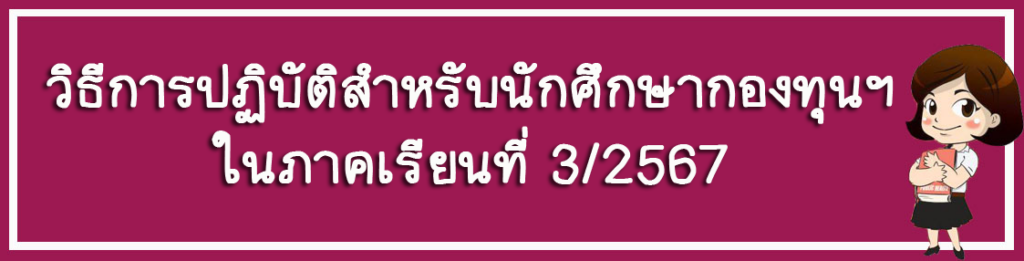 | 1. ให้นักศึกษาเข้าระบบ DSL เพื่อทำแบบยืนยันการเบิกเงิน โดยเลือกบันทึกเฉพาะค่าครองชีพเท่านั้น 2. จัดส่งเอกสารทั้งหมด ดังนี้ Click ดูตัวอย่างเอกสารทั้งหมด 3. ส่งเอกสารด้วยตนเอง ตั้งแต่วันที่ 22 – 30 เม.ย. 2568 เวลา 9.00-16.00 น. ที่อาคาร 12 ชั้น 6 ห้อง 12-602 (หยุดวันอาทิตย์ และวันหยุดนักขัตฤกษ์) |