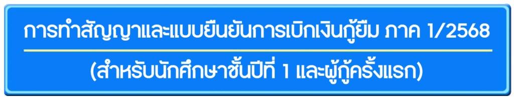 การทำสัญญาและแบบยืนยันการเบิกเงินกู้ยืม 1/2568 24/08/2024 Wannisa Khamhomruen Uncategorised นักศึกษาที่ได้รับอนุมัติการกู้แล้ว ให้ดำเนินการจัดทำสัญญา และแบบยืนยันการเบิกเงินกู้ยืม ตั้งแต่บัดนี้เป็นต้นไป